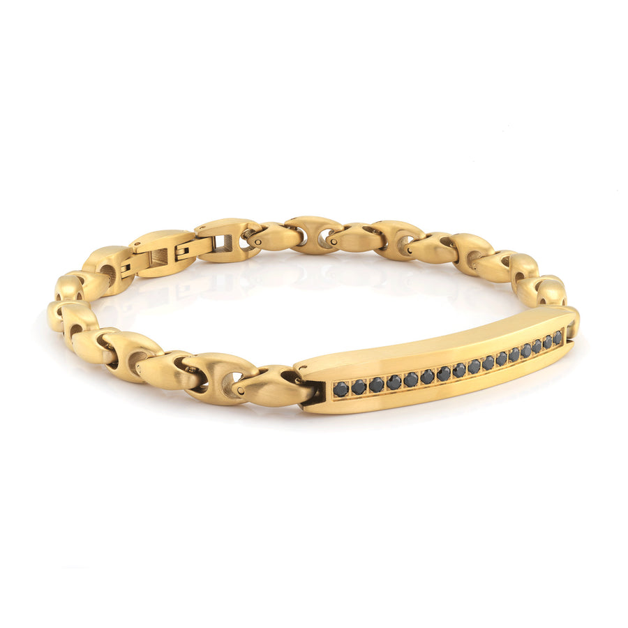 Studded Black-Cz Gold-Ip Adjustable Bracelet