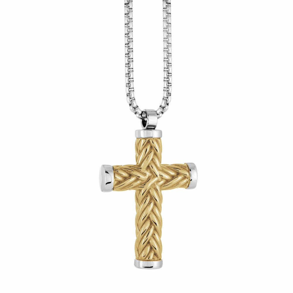 COLLIER PENDENTIF CROIX EN ACIER NOIR CZ