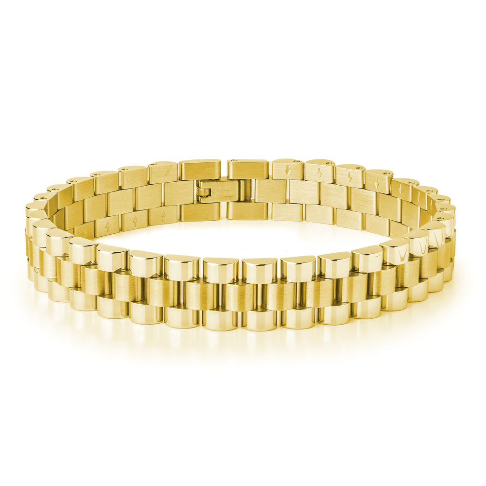Unlock an elegant style with this 11.6MM WATCH LINK BRACELET! This gorgeous ion-plated stainless steel bracelet dazzles with its distinct shine, perfect for any special occasion. Achieve the perfect fit that fits your wrist like a glove without having to worry about it breaking or rusting. Experience luxury with this beautiful bracelet!